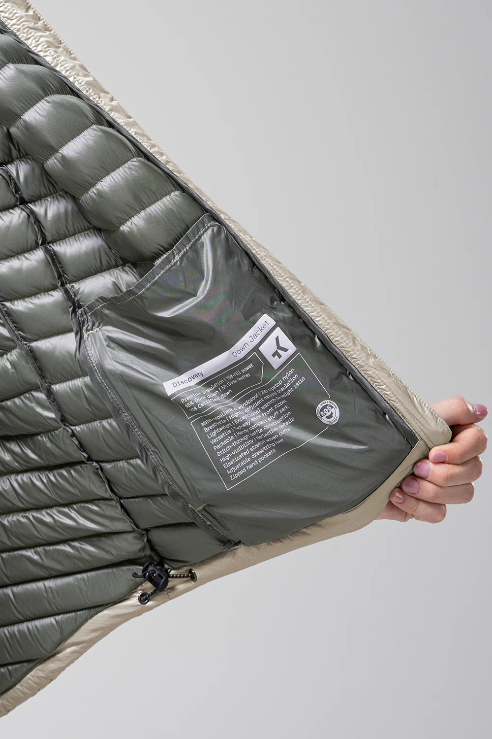- El aislamiento de pato certificado RDS (Responsible Down Standard) ofrece una relación 95/5 (down/feather). La pluma natural ofrece más aislamiento por gramo que cualquier otro material, lo que le convierte en el mejor aislante térmico.