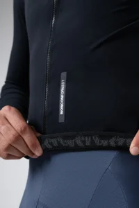 • Mangas de ajuste perfecto, para no penalizar la aerodinámica. Puño diseñado para introducirse fácilmente en unos guantes largos.