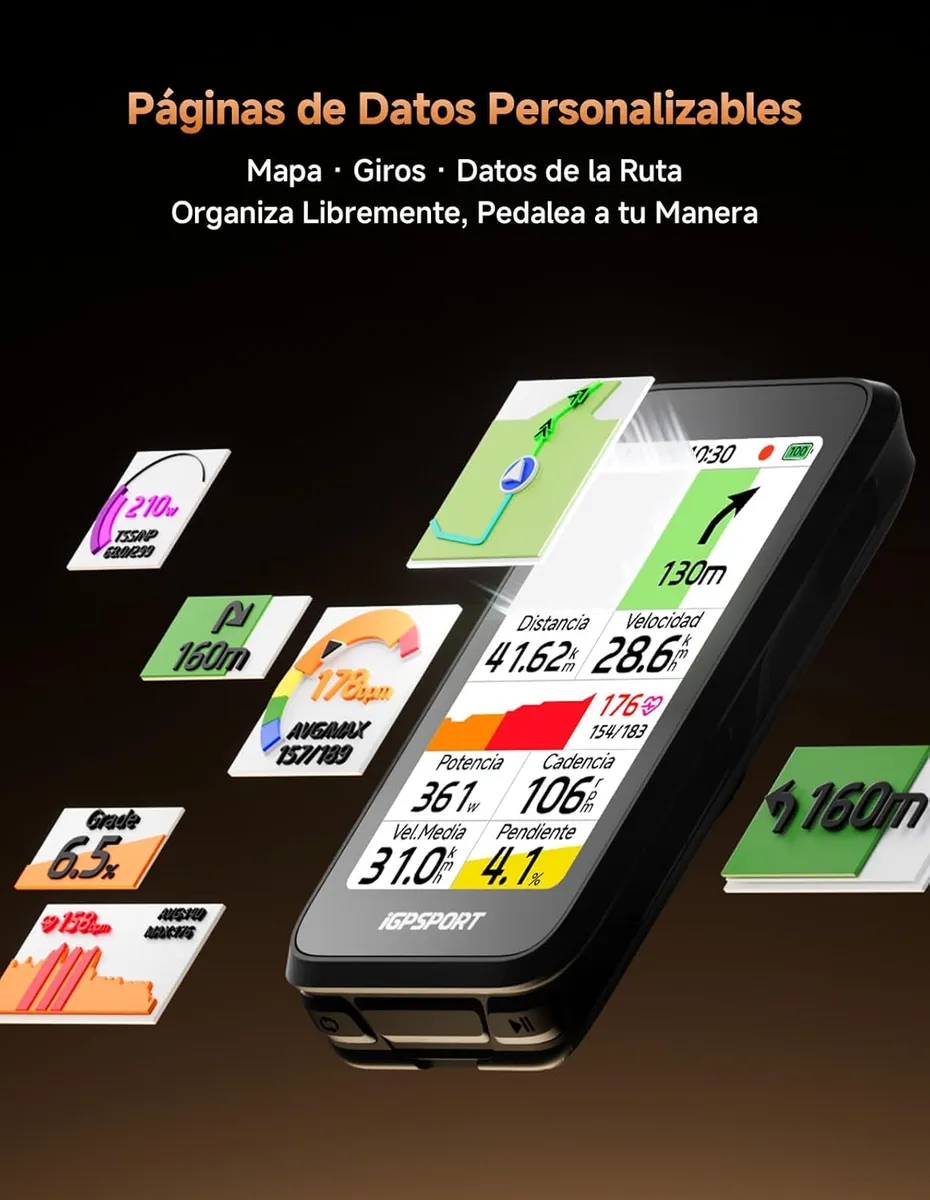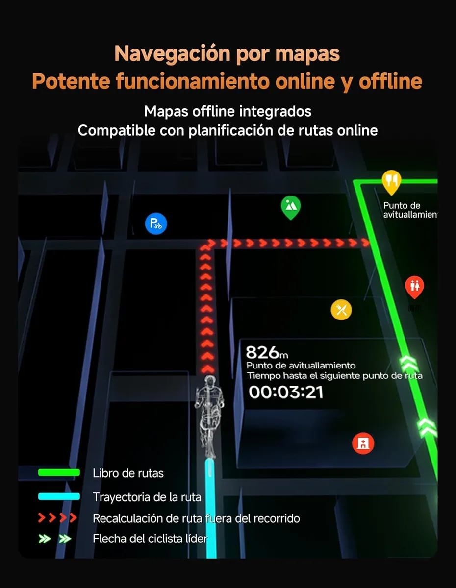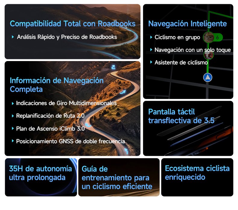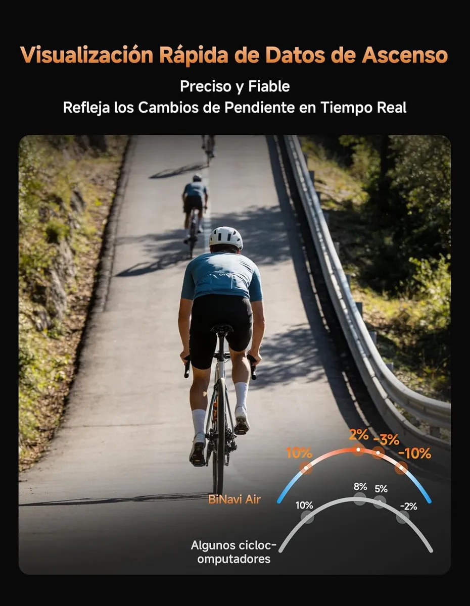El BiNavi Air es un ciclocomputador GPS ultraligero diseñado para ciclistas que priorizan navegación avanzada, precisión y autonomía. Su enfoque está en ofrecer mapas claros, conectividad completa y un diseño compacto para carretera, MTB, gravel o rutas largas
