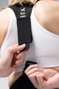 - El tirante ergonómico está confeccionado en corte vivo y sin costuras, lo que mejora notablemente el ajuste. Incorpora un sistema magnético en la parte trasera para poder quitártelo de manera rápida y con facilidad cuando la situación lo requiera.