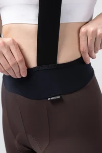 - El ajuste en los muslos se resuelve con una terminación limpia en corte vivo, sin necesidad de costuras ni aplicaciones de silicona interior. Gracias a la precisión del patrón y a la elevada elasticidad del tejido, se garantiza una sujeción firme y estable durante el pedaleo, eliminando cualquier riesgo de compresión excesiva, marcas en la piel o molestias por fricción.