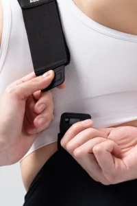 - El tirante ergonómico está confeccionado en corte vivo y sin costuras, lo que mejora notablemente el ajuste. Incorpora un sistema magnético en la parte trasera para poder quitártelo de manera rápida y con facilidad cuando la situación lo requiera.